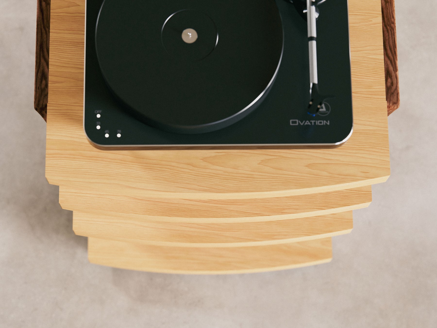 - Optional Vinyl Storage on bottom shelf with "Now-Playing" slot