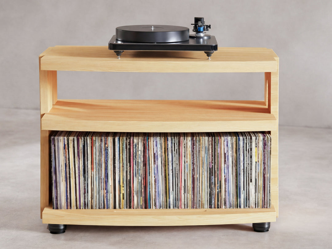 • Optional Vinyl Storage on bottom shelf with "Now-Playing" slot